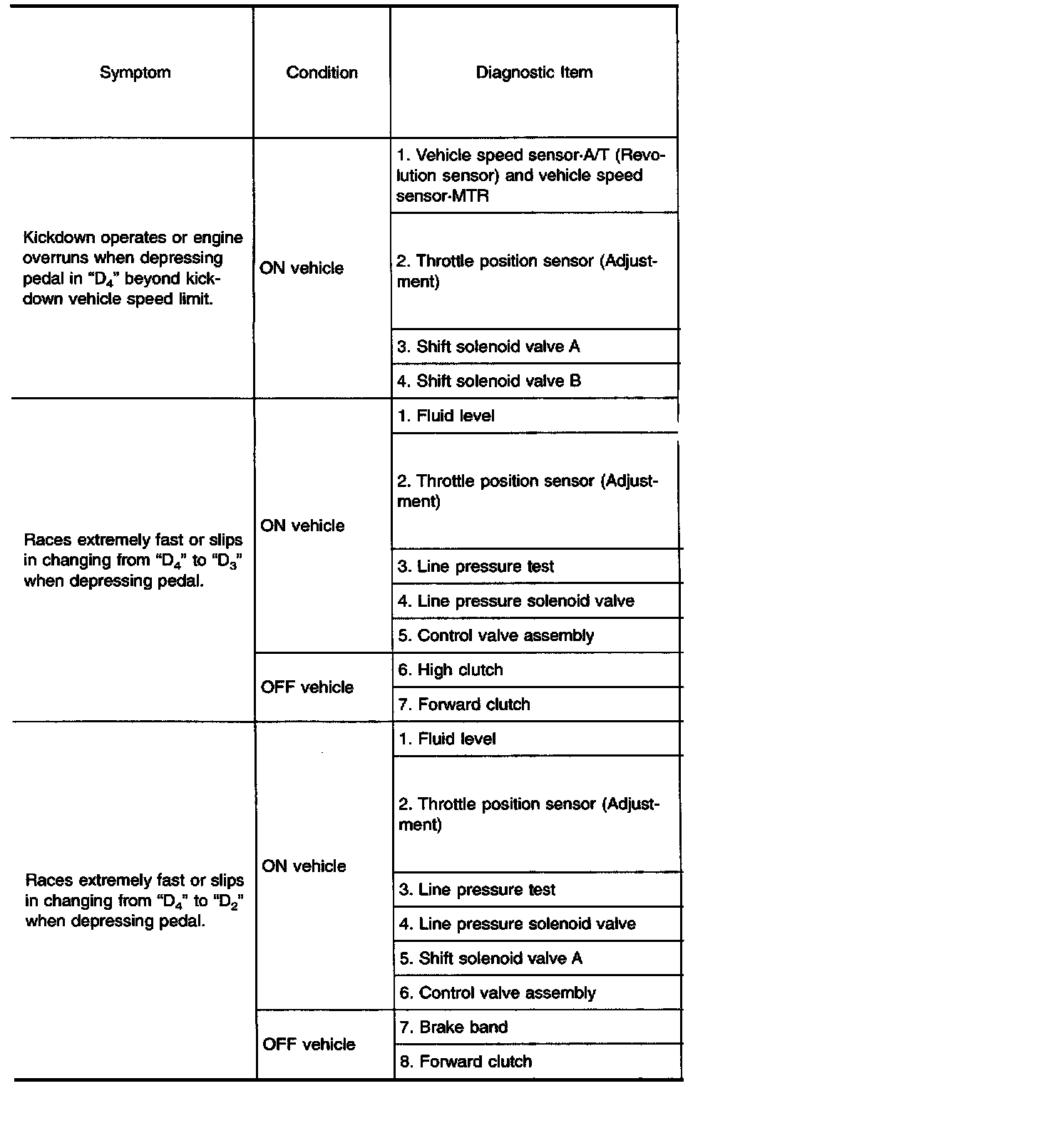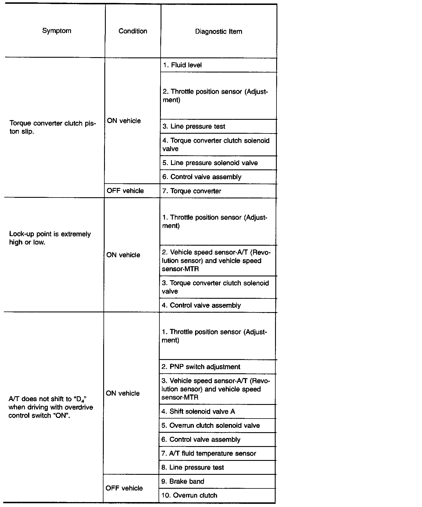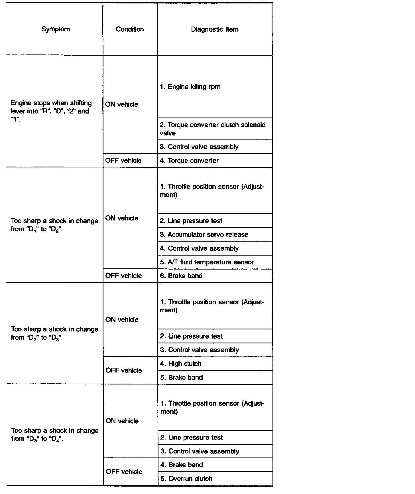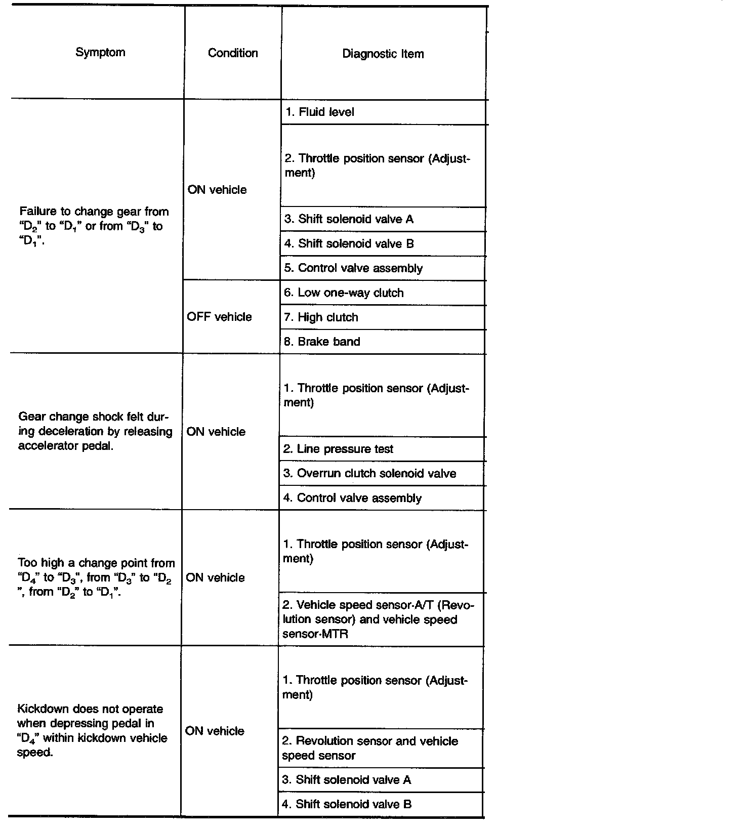Diagnostic item Nos. in OFF vehicle indicate that the transmission must be removed for the inspection.