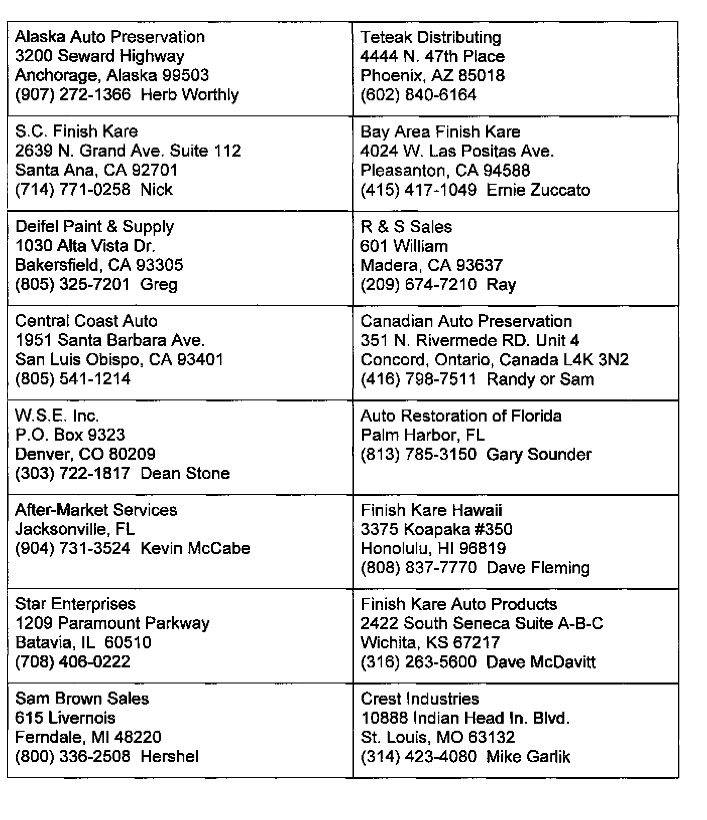 Finish Kare products are marketed by mobile distributors which will deliver the product directly to your dealership. If a Finish Kare distributor is not located in your area, Finish Kare can be contacted at the number above for direct shipment from their national office.