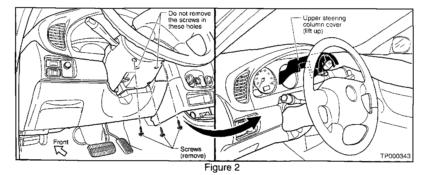 5. Remove three screws, then carefully remove the upper steering column cover (see Figure 2).