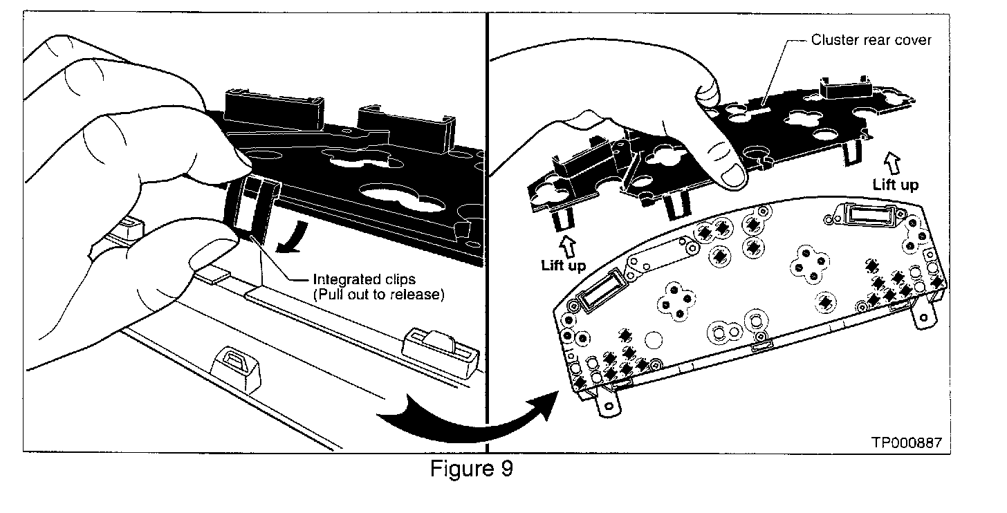 12. Remove and save 9 mounting screws from the cluster rear cover (see Figure 8).