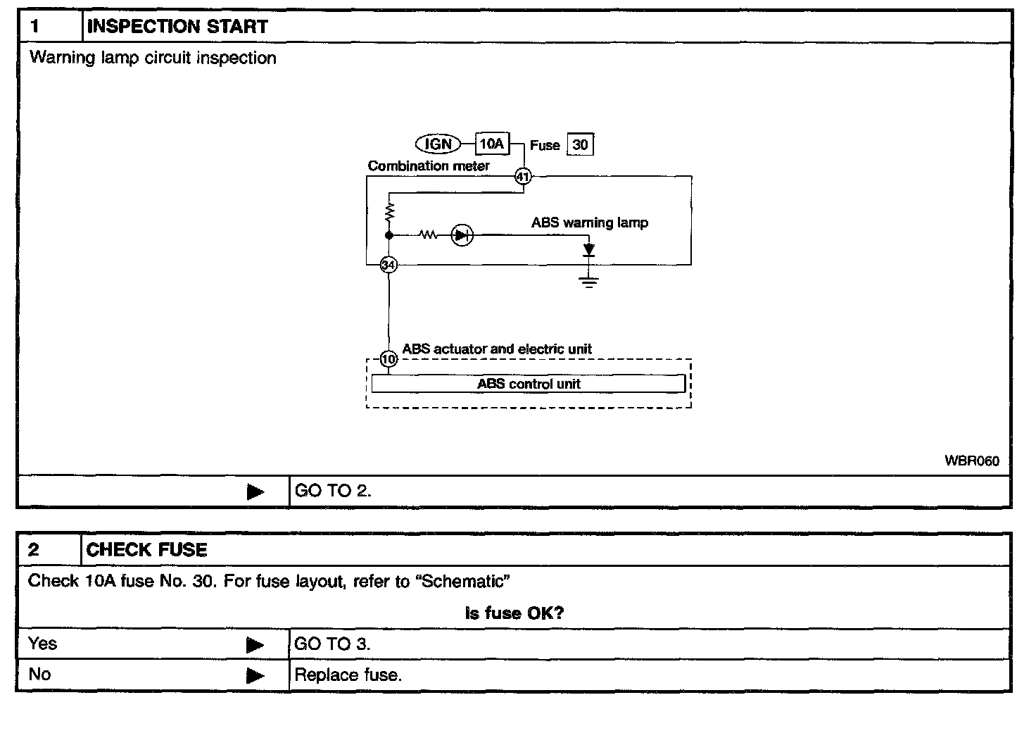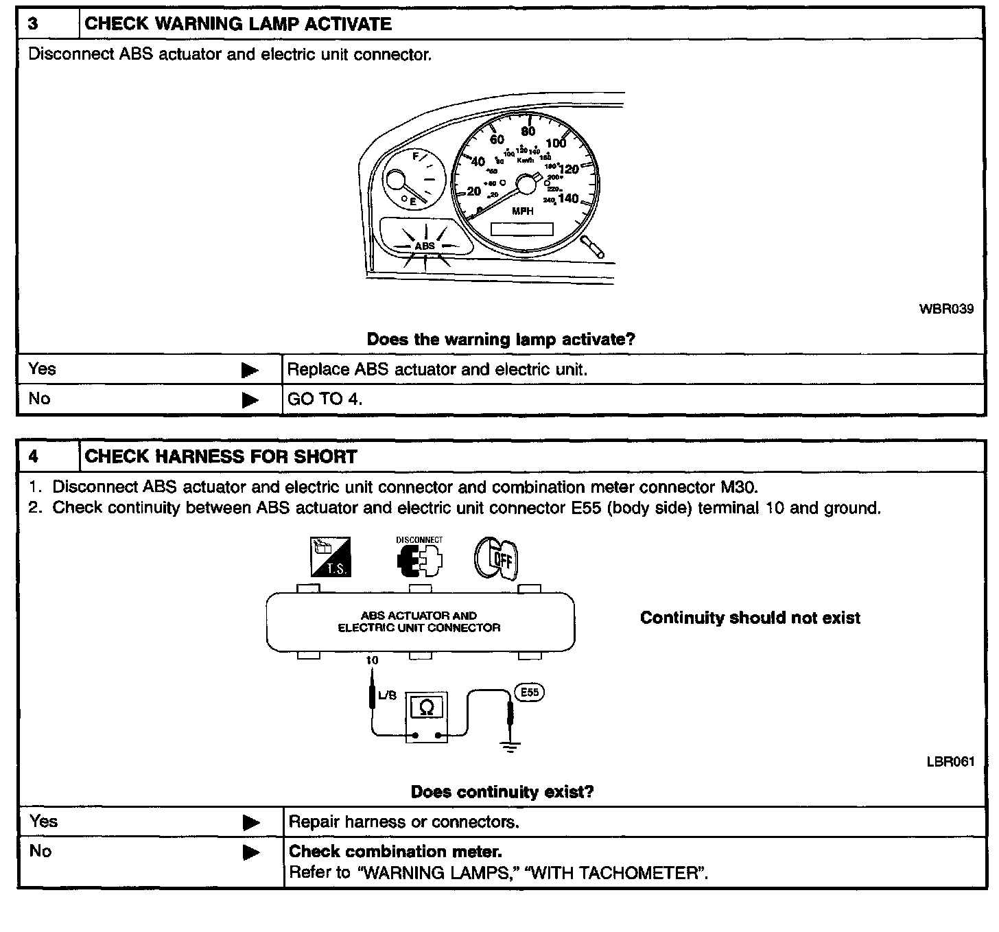 6. ABS Warning Lamp Does Not Come On When Ignition Switch Is On