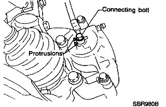 It is not necessary to remove brake hose connecting bolt except for disassembly or replacement of caliper assembly. In this case, suspend caliper assembly with wire so as not to stretch brake hose.