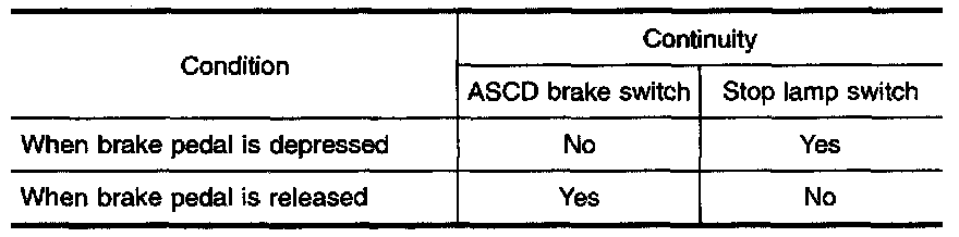 Check brake pedal adjustment after checking each switch. Refer to "Adjustment".