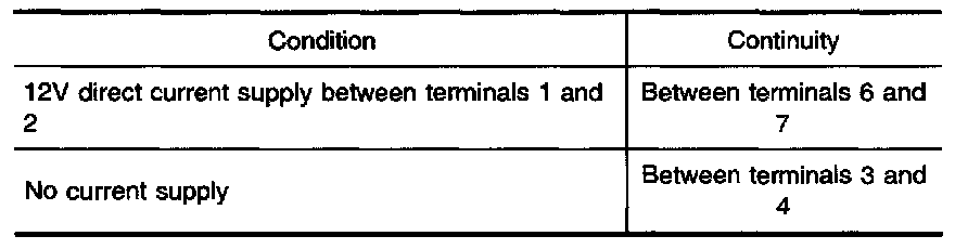 Check continuity between terminals 3 and 4, 6 and 7.