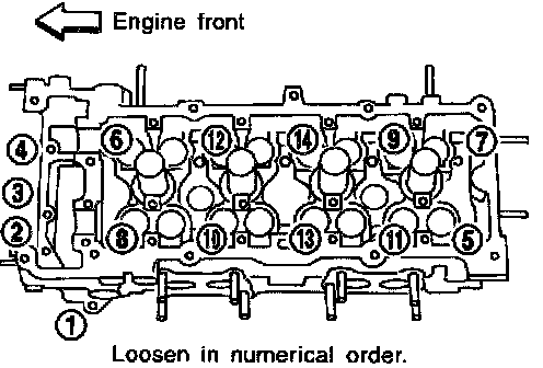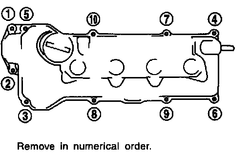 12. Remove rocker cover bolts in numerical order as shown in the figure.