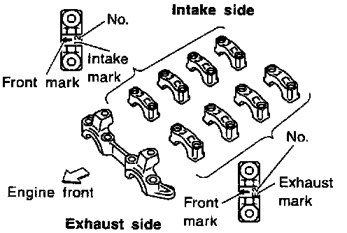 ^ Make sure camshaft brackets are aligned as marked during disassembly.