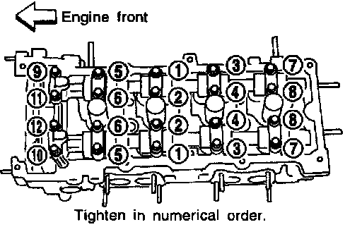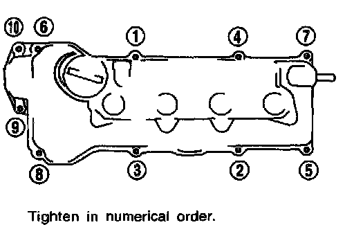 13. Install rocker cover with rocker cover gasket and tighten bolts in numerical order as shown in the figure.