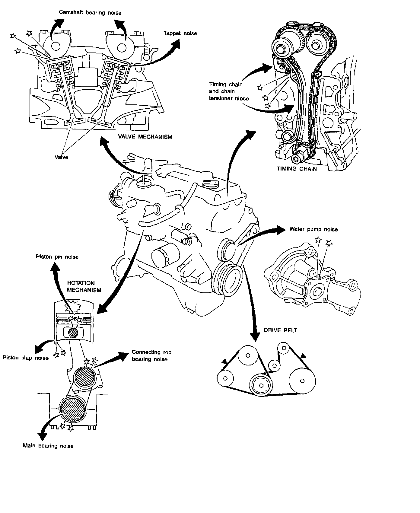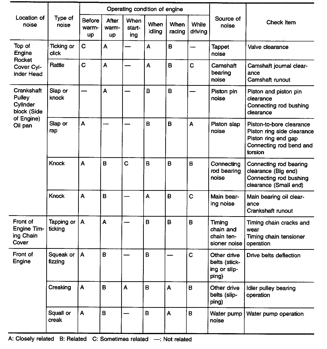 NOISE, VIBRATION AND HARSHNESS (NVH) Troubleshooting-Engine NoiseUse the chart to help you find the cause of the symptom.