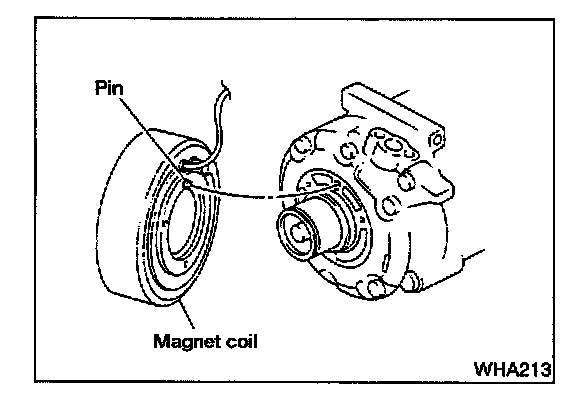Be sure to align the magnet coil pin with the hole in the compressor front head.