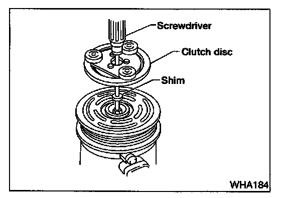 - Install the clutch disc on the drive shaft, together with the original shim(s). Press the clutch disc down by hand.