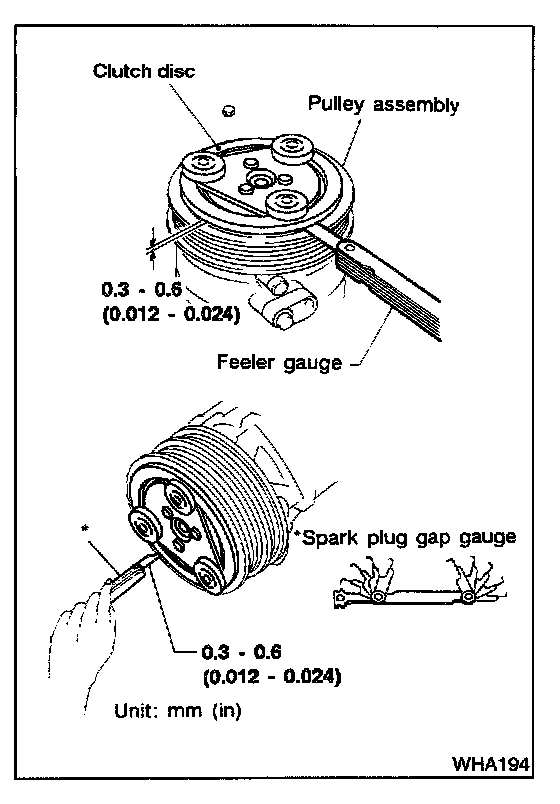 Clutch disc-to-pulley clearance: 0.3 - 0.6 mm (0.012 - 0.024 in)