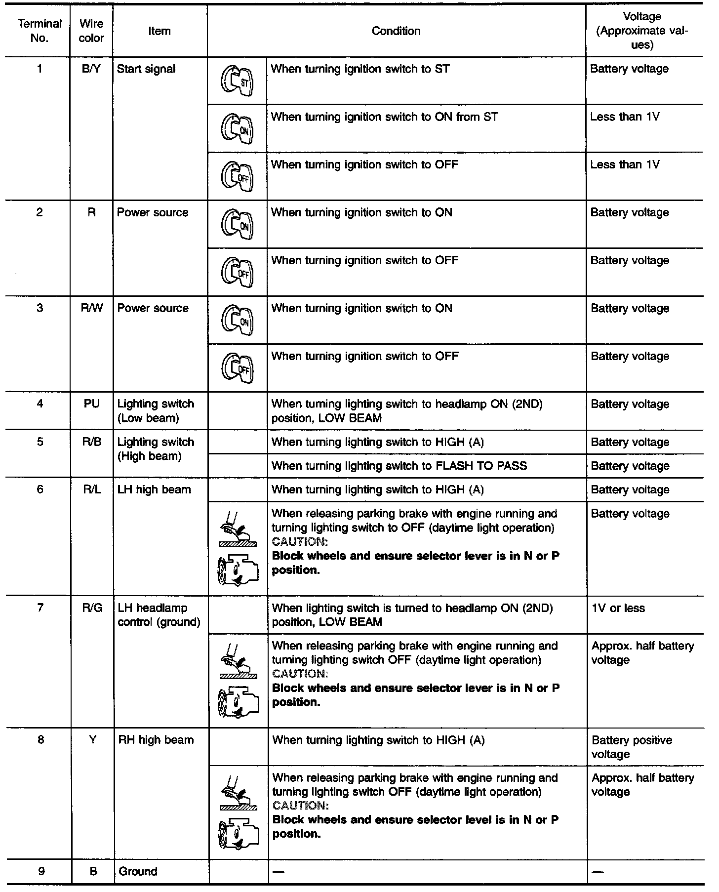 Daytime Light Control Unit Inspection Table (Part 2 Of 2):