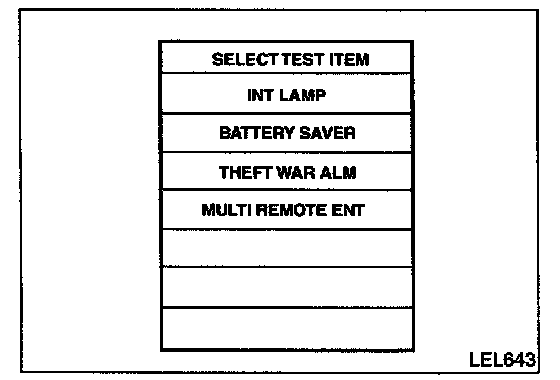 CONSULT-II Inspection Procedure (With Multi-Remote Control System)"INT LAMP"/"BATTERY SAVER"