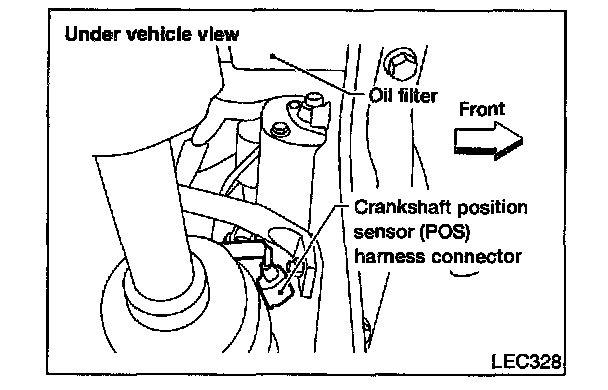 The crankshaft position sensor (POS) is located on the cylinder block rear housing facing the gear teeth (cogs) of the signal plate at the end of the crankshaft. It detects the fluctuation of the engine revolution.