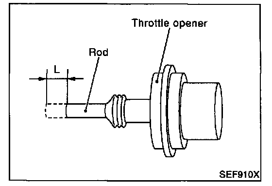1. Start engine and let it idle.2. Confirm the amount of the rod moves "L" more than 3.0 mm (0.118 in), the throttle drum becomes free from the rod of the throttle opener.
