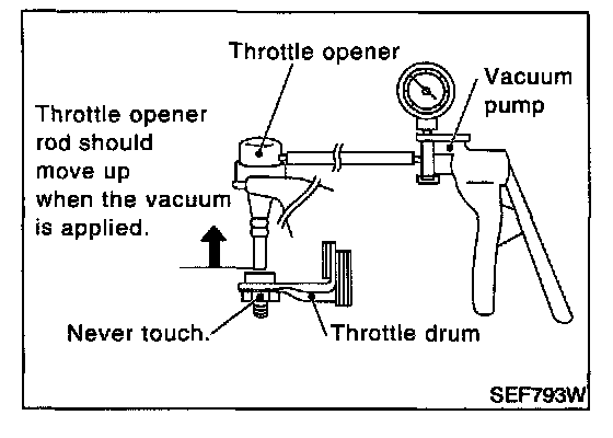 b. Apply vacuum [more than -40.0 kPa (-300 mmHg, -11.81 inHg)] until the throttle drum becomes free from the rod of the throttle opener.