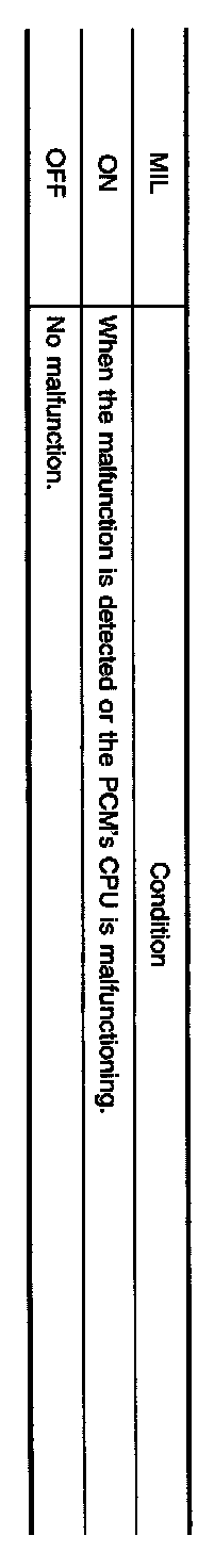 In this mode, the MIL on the instrument panel should stay ON. If it remains OFF, check the bulb,"WARNING LAMPS".