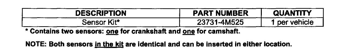 2000-01 SENTRA ENGINE SENSORS REPLACEMENT