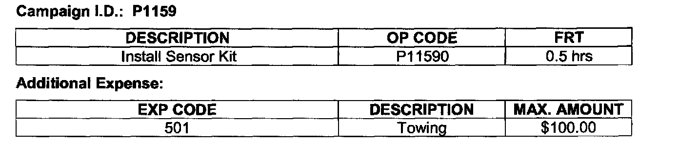 CAMPAIGN I.D. # / NHTSA # : P1159 / 01V-357