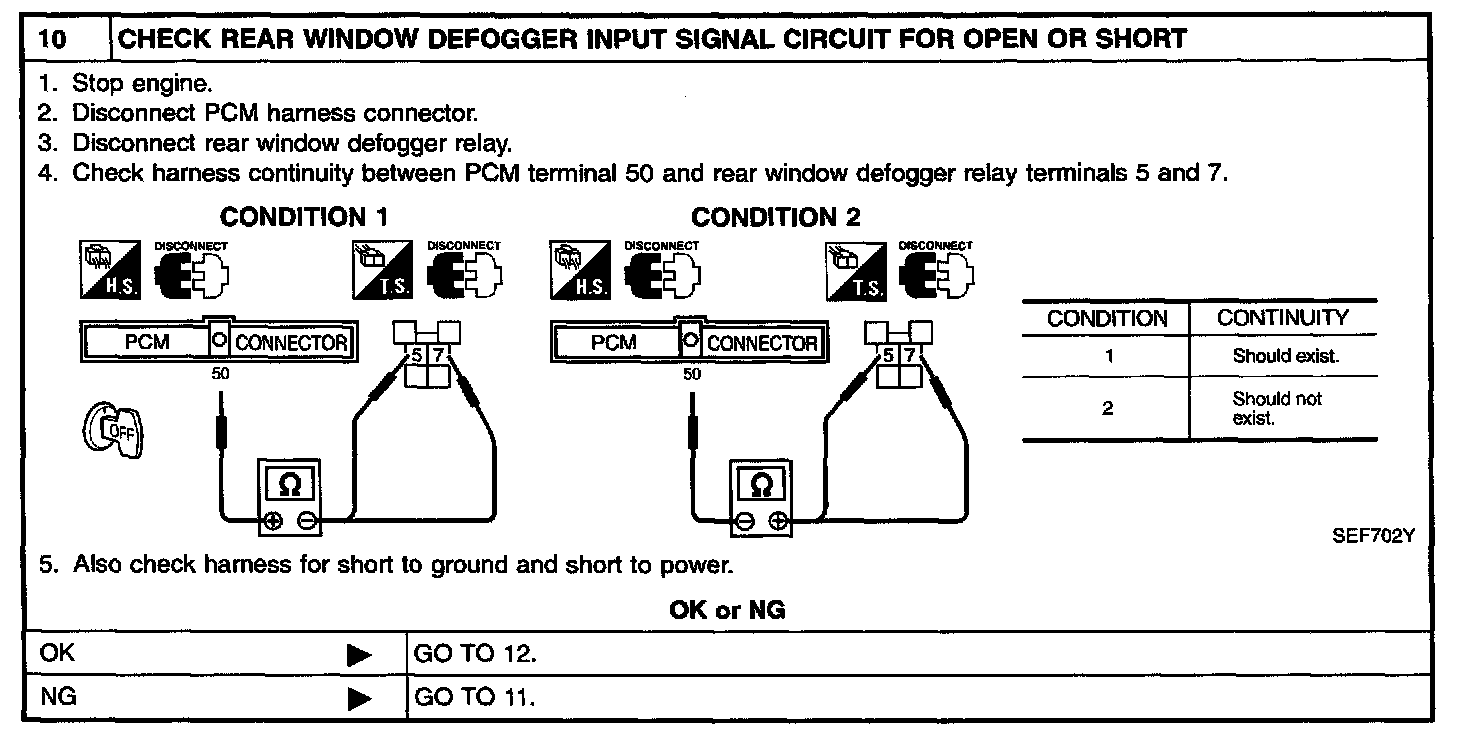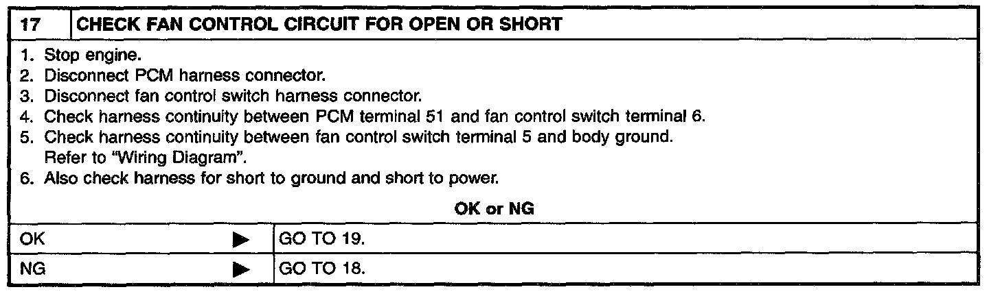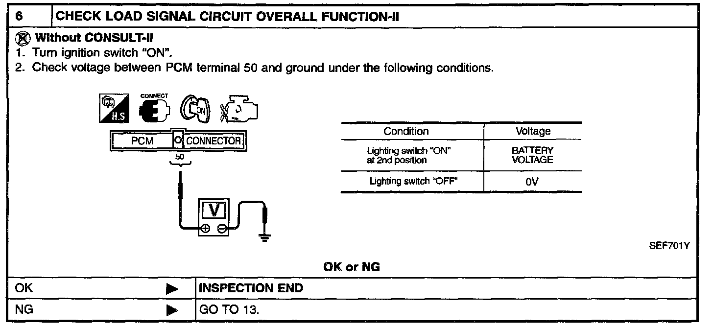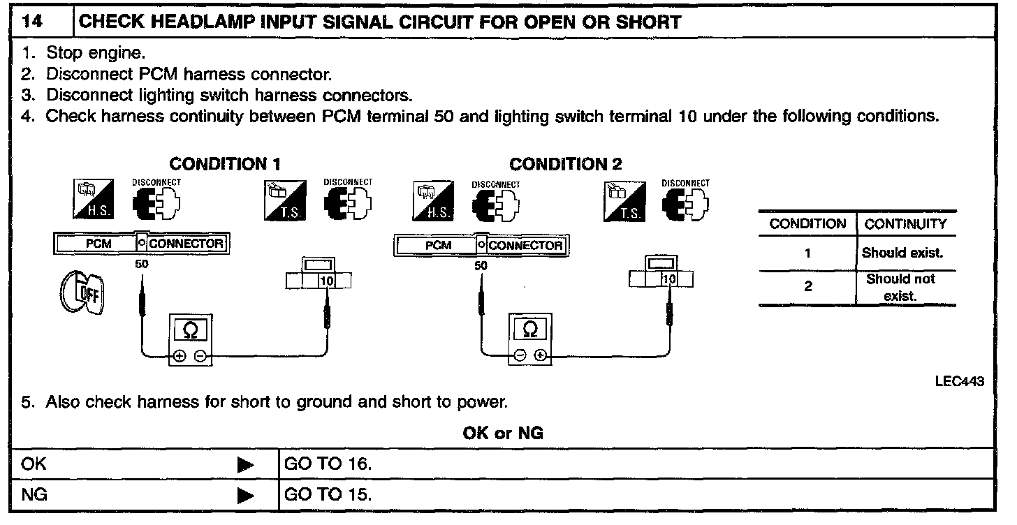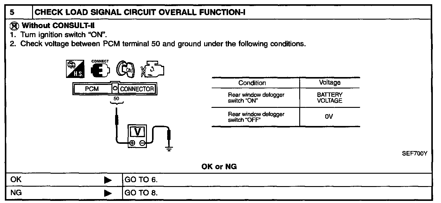 CAUTION: DO NOT USE PCM GROUND TERMINALS WHEN MEASURING INPUT/OUTPUT VOLTAGE. DOING SO MAY RESULT IN DAMAGE TO THE PCM'S TRANSISTOR. USE A GROUND OTHER THAN PCM TERMINALS, SUCH AS THE GROUND.