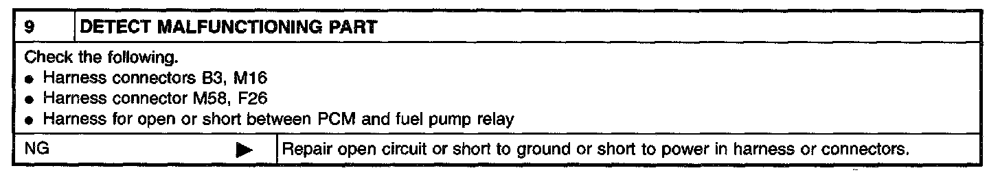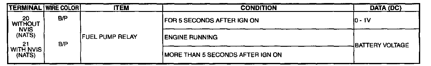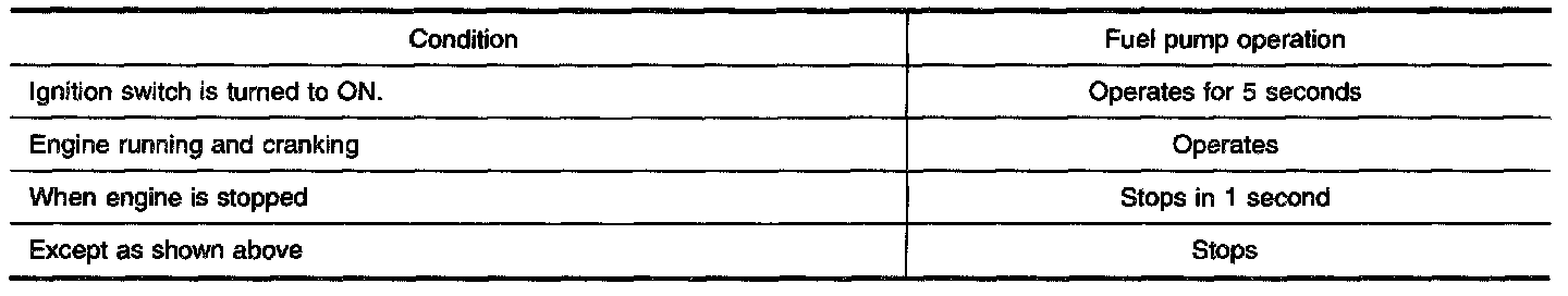 The PCM activates the fuel pump for several seconds after the ignition switch is turned on to improve engine startability. If the PCM receives a 180 ° signal from the camshaft position sensor (PHASE), it knows that the engine is rotating, and causes the pump to perform. If the 180 ° signal is not received when the ignition switch is on, the engine stalls. The PCM stops pump operation and prevents battery discharging, thereby improving safety. The PCM does not directly drive the fuel pump. It controls the ON/OFF fuel pump relay, which in turn controls the fuel pump.