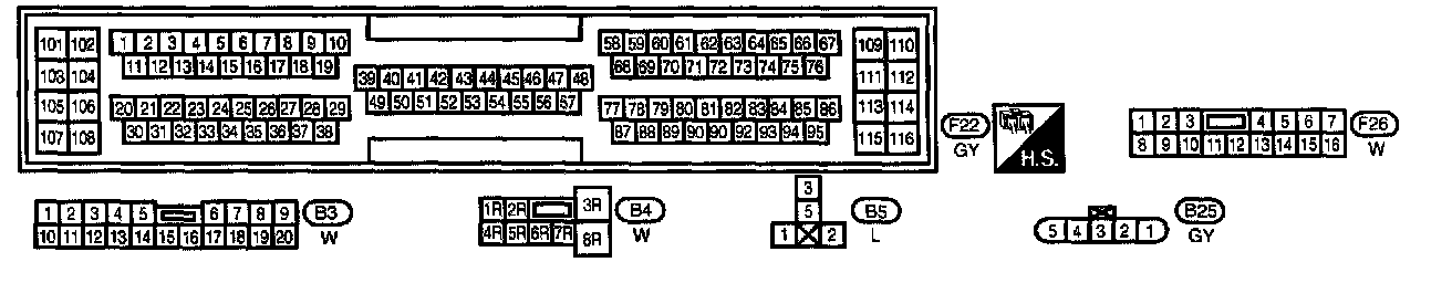 CAUTION: DO NOT USE PCM GROUND TERMINALS WHEN MEASURING INPUT/OUTPUT VOLTAGE. DOING SO MAY RESULT IN DAMAGE TO THE PCM'S TRANSISTOR. USE A GROUND OTHER THAN PCM TERMINALS, SUCH AS THE GROUND.