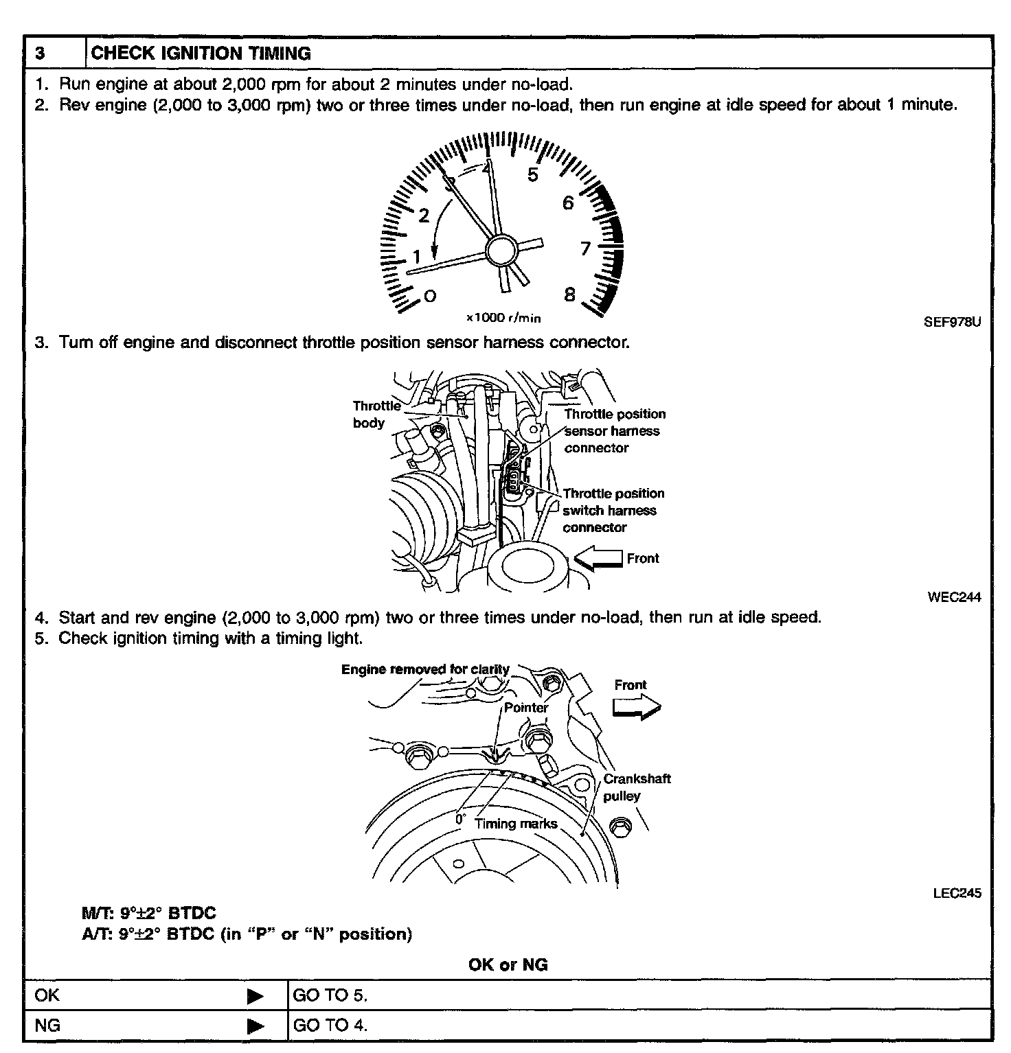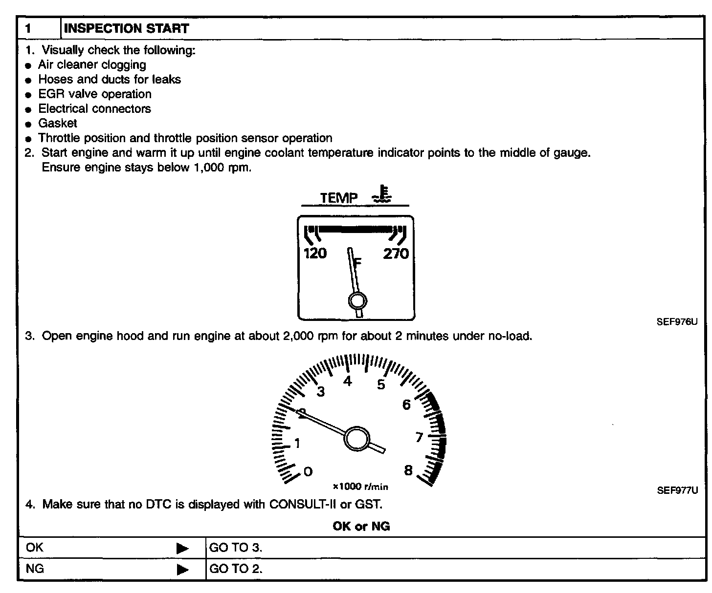 2. On models equipped with air conditioner, checks should be carried out while the air conditioner is "OFF".