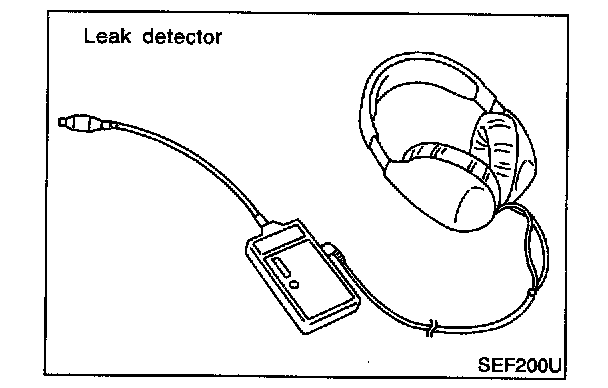 8. Locate the leak using a leak detector. Refer to "EVAPORATIVE EMISSION LINE DRAWING".