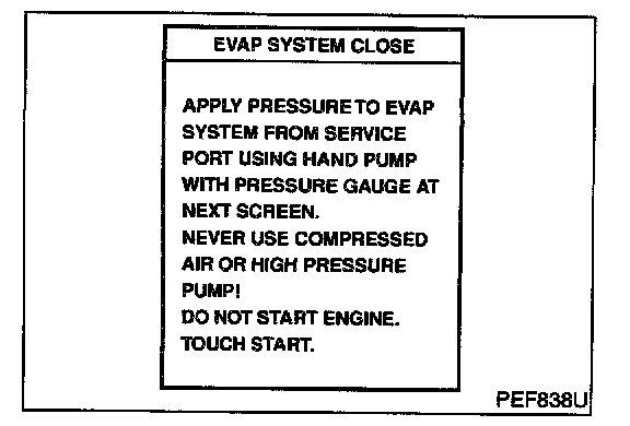 - Do not exceed 4.12 kPa (0.042 kg/sq.cm, 0.6 psi) of pressure in EVAP system.