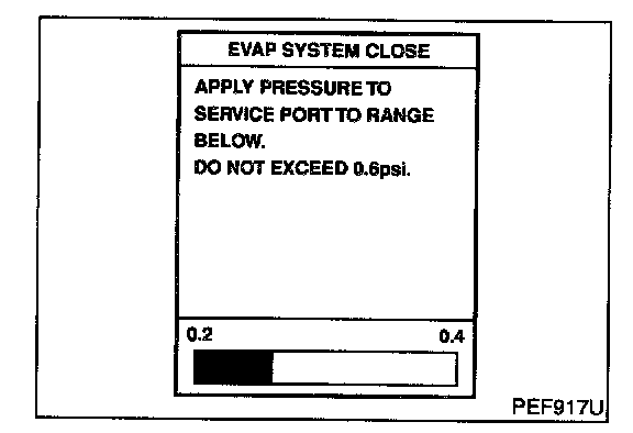 6. Apply positive pressure to the EVAP system until the pressure indicator reaches the middle of the bar graph.