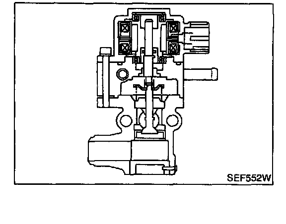 The EGR volume control valve uses a step motor to control the flow rate of EGR from exhaust manifold. This motor has four winding phases. It operates according to the output pulse signal of the PCM. Two windings are turned ON and OFF in sequence. Each time an ON pulse is issued, the valve opens or closes, changing the flow rate. When no change in the flow rate is needed, the PCM does not issue the pulse signal. A certain voltage signal is issued so that the valve remains at that particular opening.