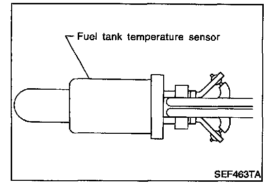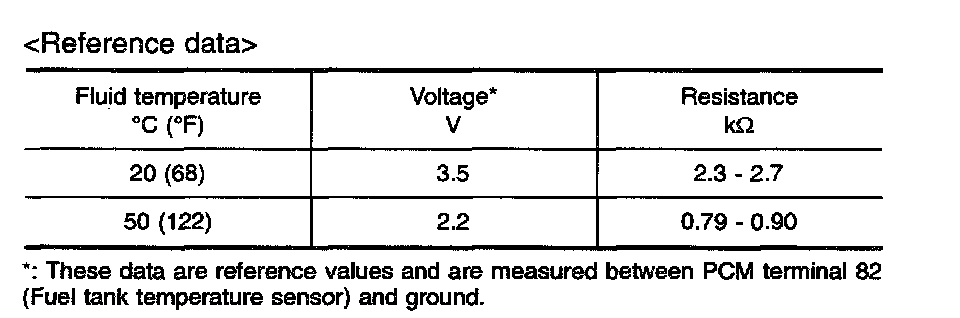 The fuel tank temperature sensor is used to detect the fuel temperature inside the fuel tank. The sensor modifies a voltage signal from the PCM. The modified signal returns to the PCM as the fuel temperature input. The sensor uses a thermistor which is sensitive to the change in temperature. The electrical resistance of the thermistor decreases as temperature increases.