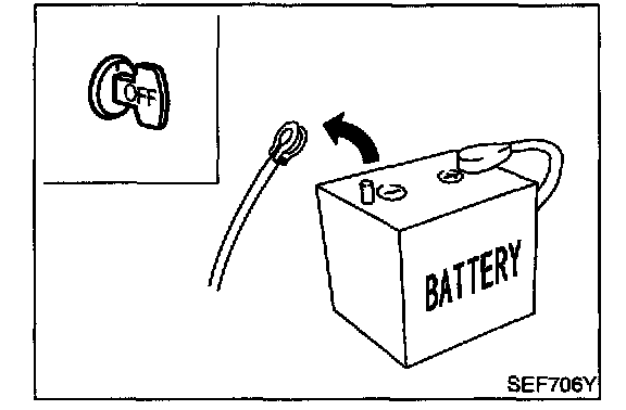 - Before removing parts, turn off ignition switch and then disconnect battery ground cable.