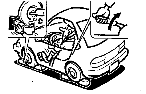 1. Check A/T fluid and engine oil levels. If necessary, add fluid or oil.