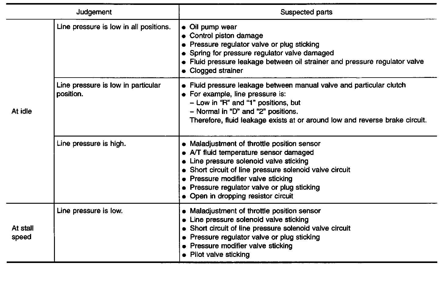 - When measuring line pressure at stall speed, follow the stall test procedure. Refer to Specifications.