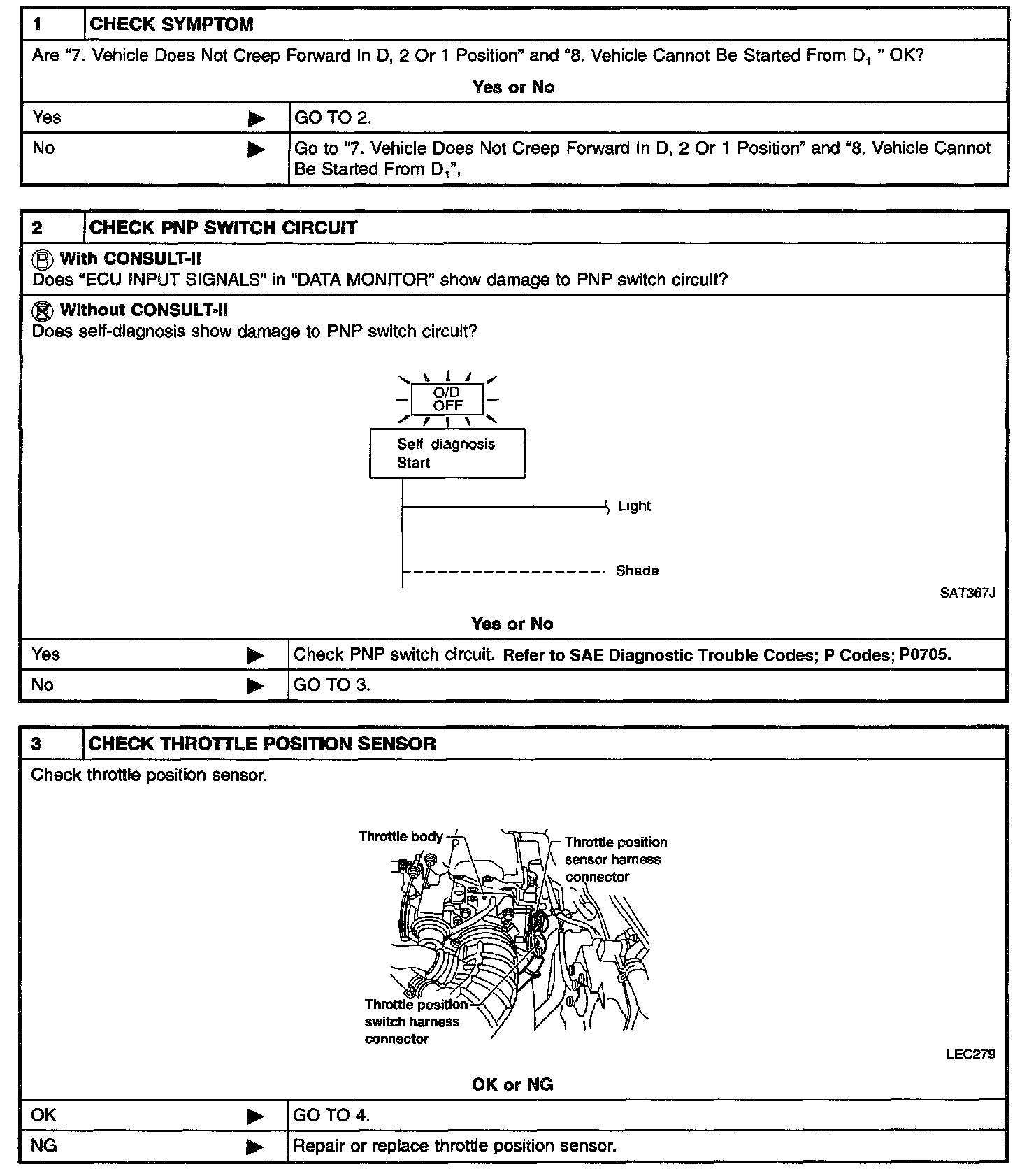 SYMPTOM: A/T does not shift from D2 to D3 at the specified speed.