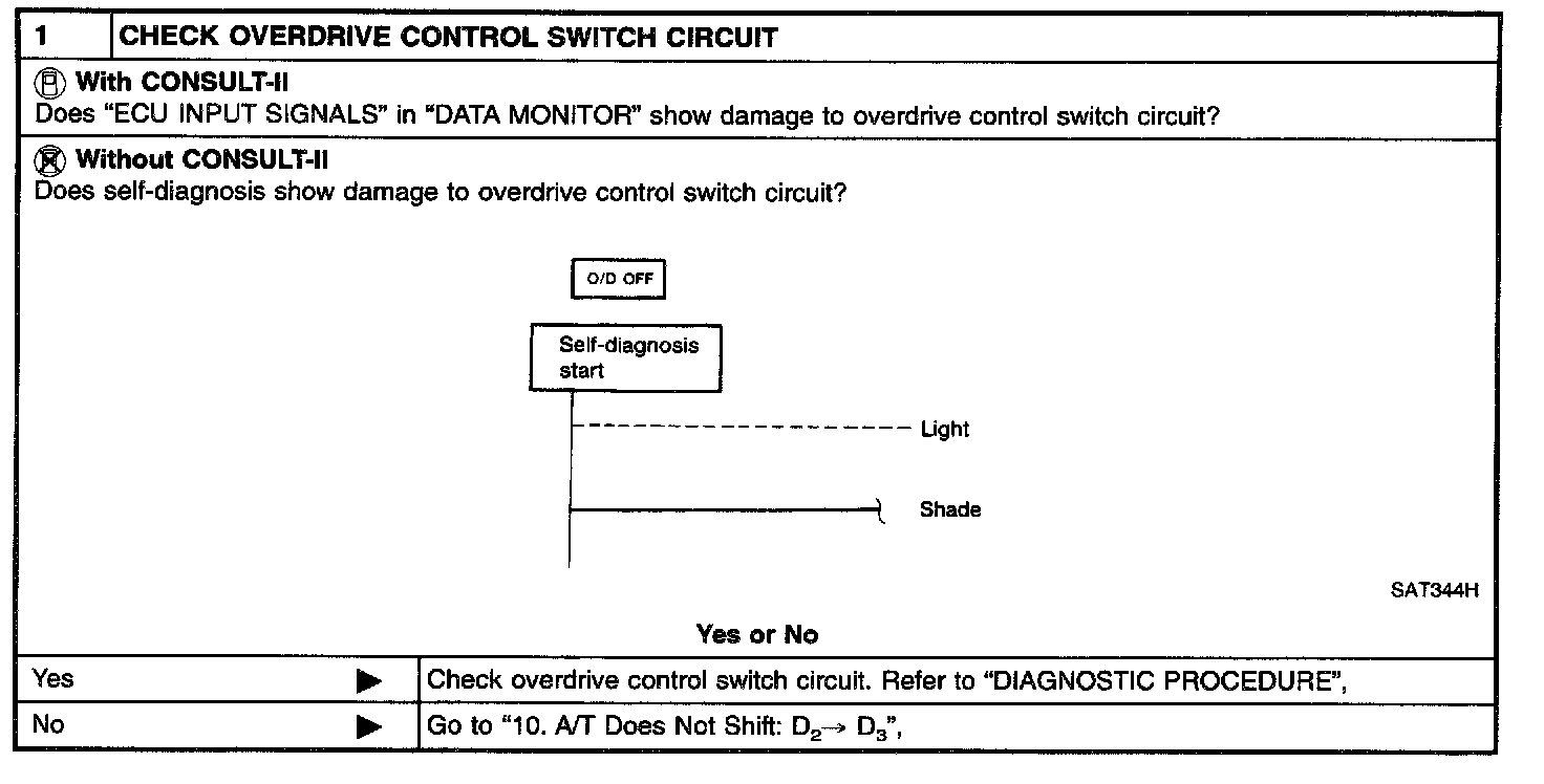 SYMPTOM: A/T does not shift from D4 to D3 when changing overdrive control switch to OFF position.