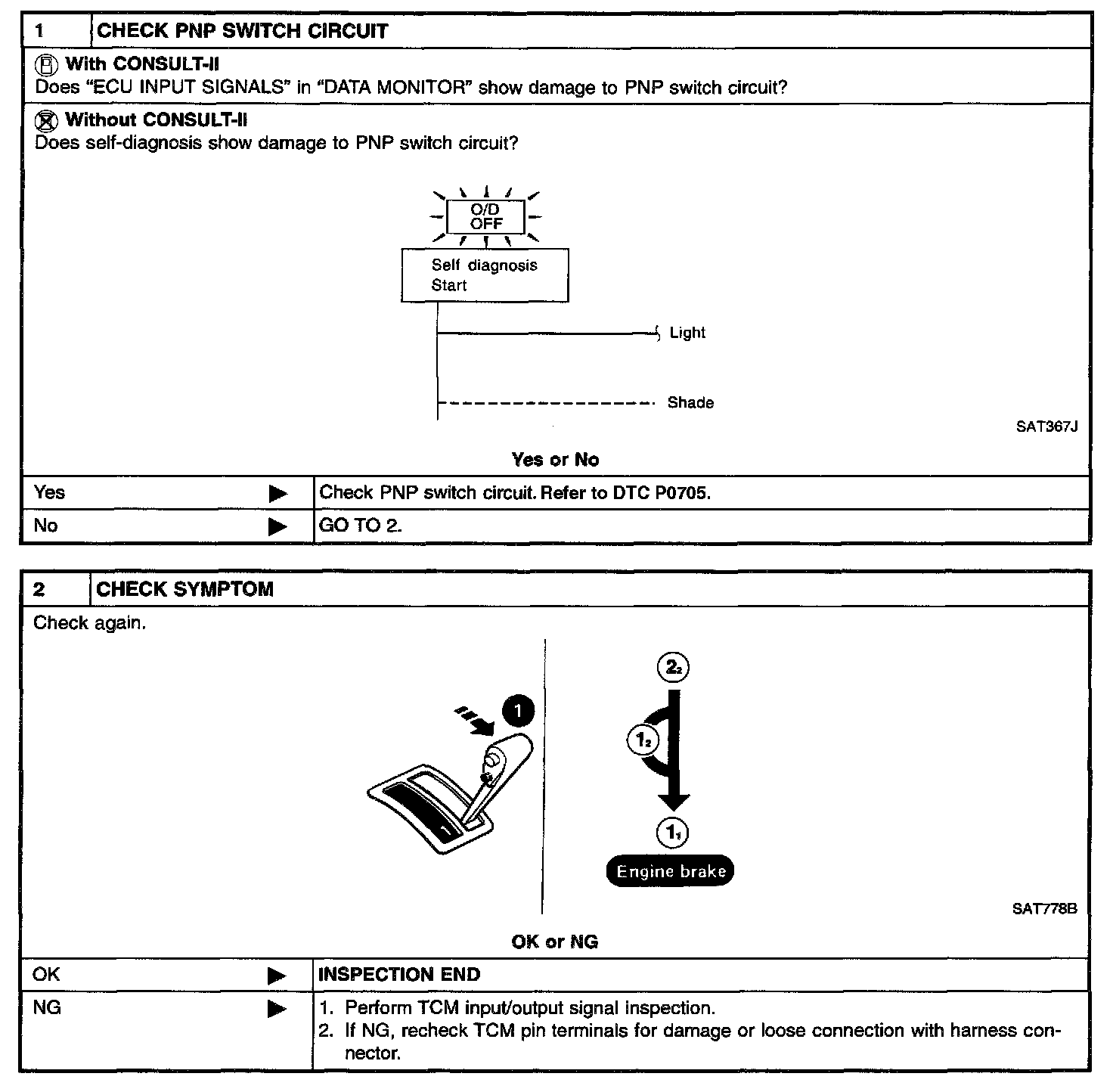 A/T Does Not Shift: 22 -> 11, When Selector Lever 2 -> 1 Position
