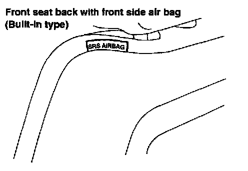 Front side air bag is built-in type. The front seat backs with built-in type side air bag have the labels shown in figure.