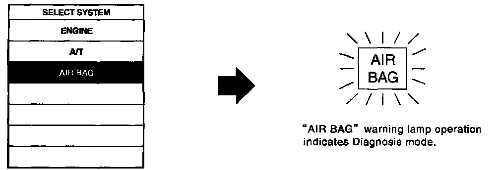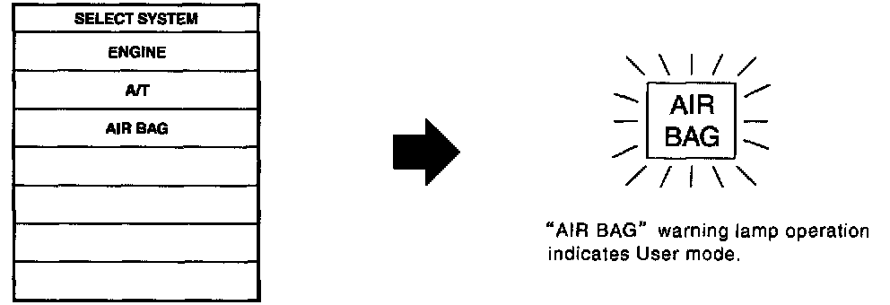 After selecting "AIR BAG" on the "SELECT SYSTEM" screen, User mode automatically changes to Diagnosis mode.