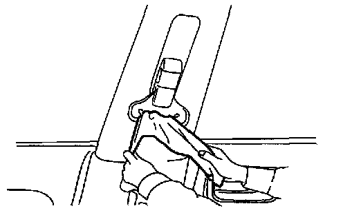 b. Allow the seat belt to retract. Ensure that belt returns smoothly and completely into the retractor. If the seat belt does not return smoothly, wipe the inside of the loops with a clean paper cloth etc. because dirt built up in the loops of the upper anchors can cause the seat belts to retract slowly.