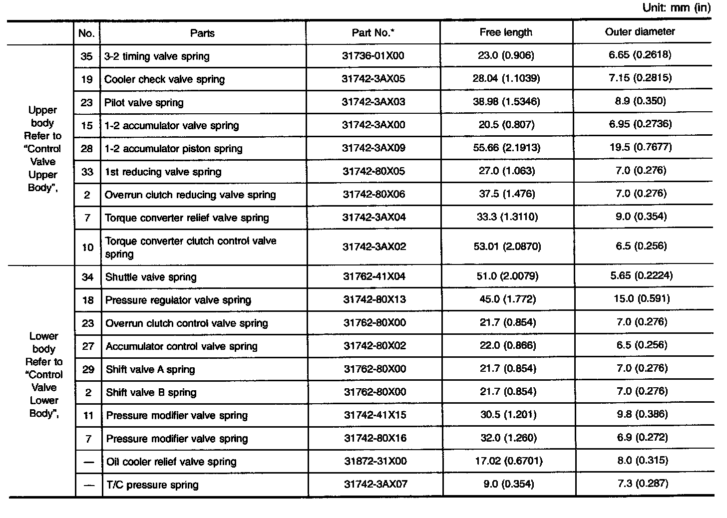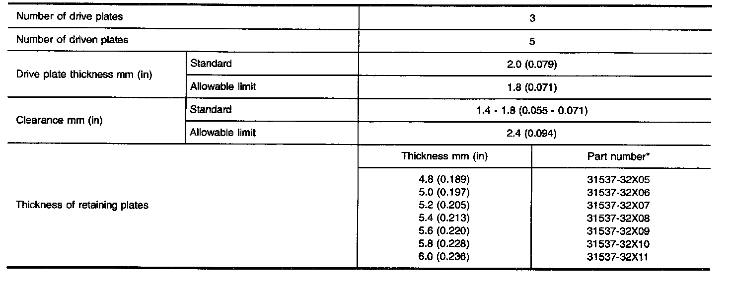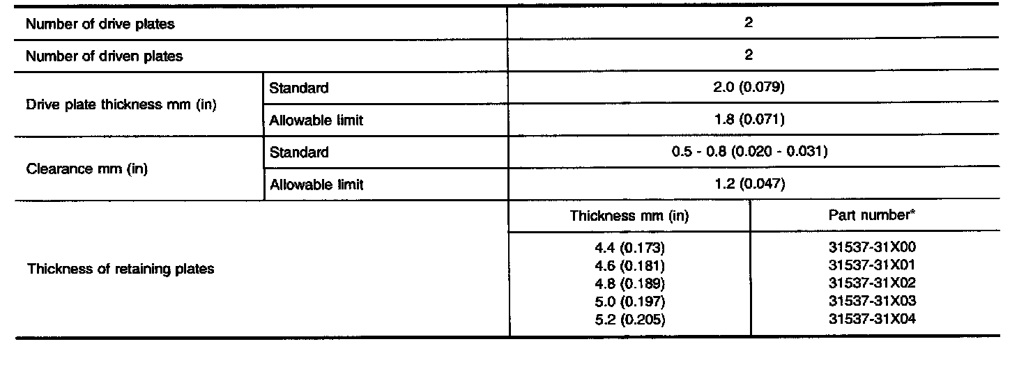 TABLE FOR SELECTING DIFFERENTIAL SIDE BEARING ADJUSTING SHIMS