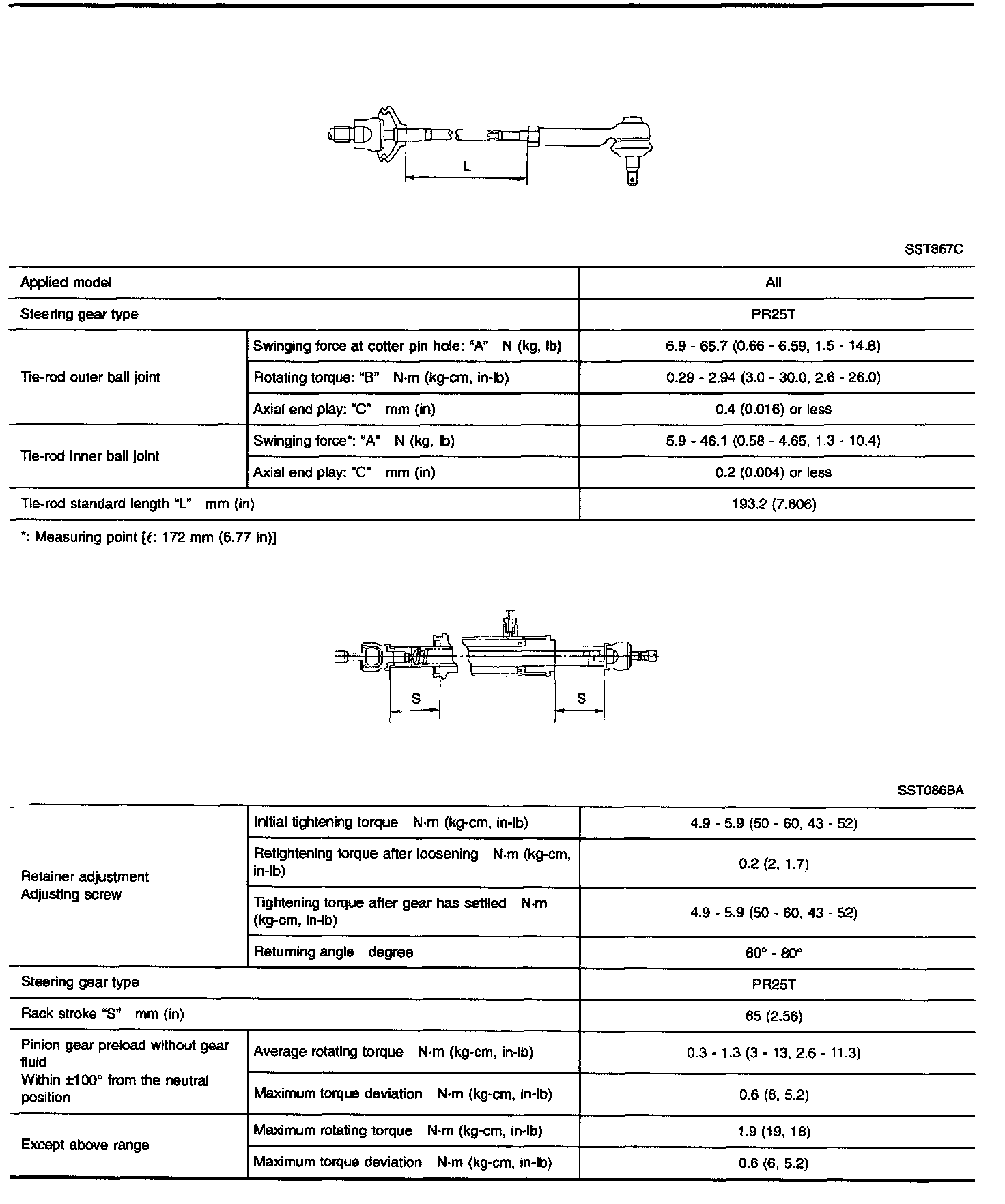 ^ If pinion rotating torque is not within the specifications, replace steering gear assembly.