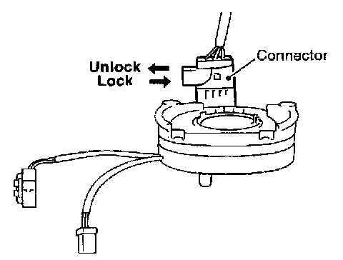 1. Remove lower lid from steering wheel, and disconnect driver air bag module connector.