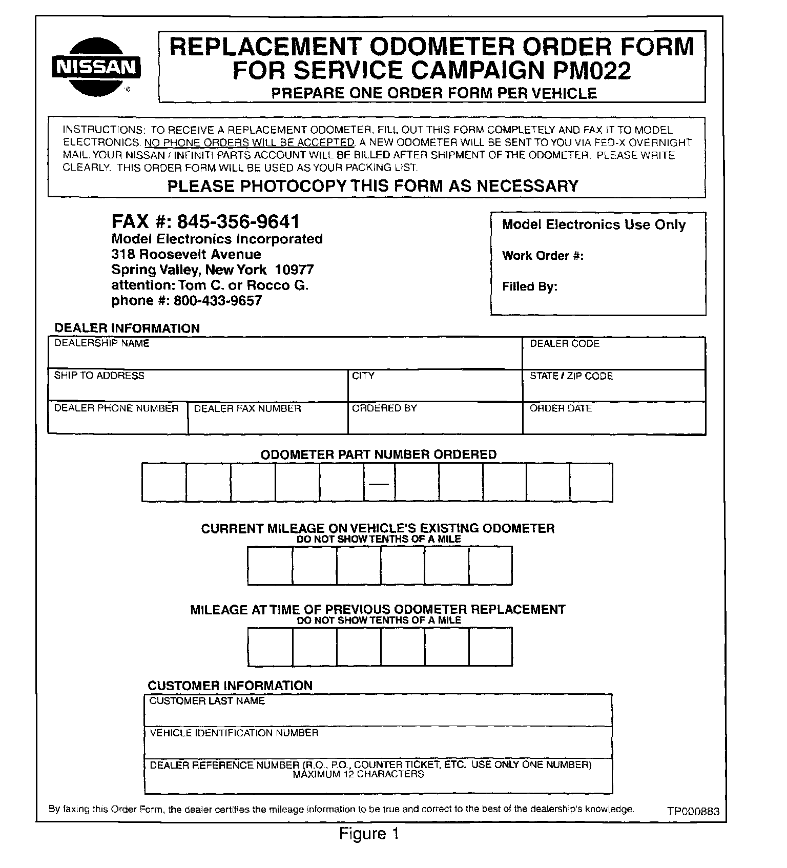 Make a photocopy of the Replacement Odometer Order Form (see Figure 1).