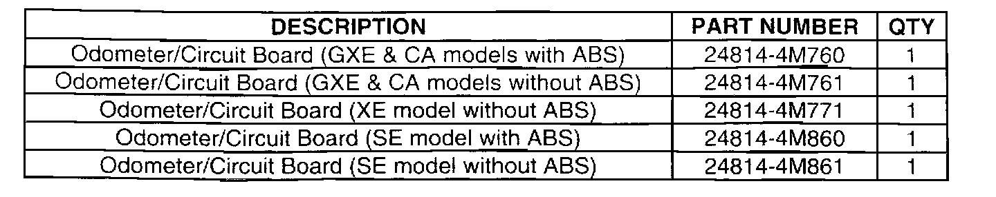 2000-01 SENTRA ODOMETER REPLACEMENT