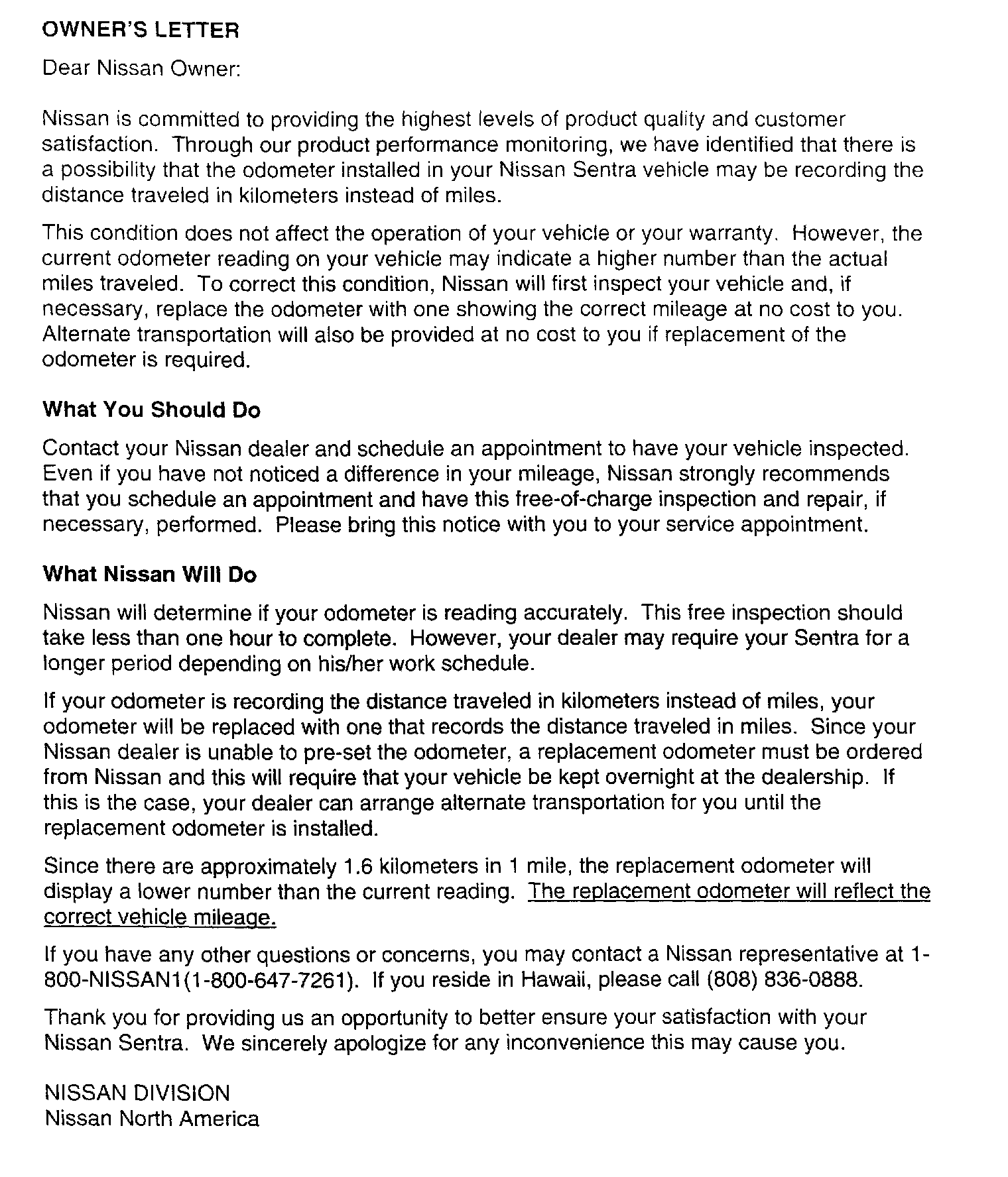 Campaign - Odometer Replacement