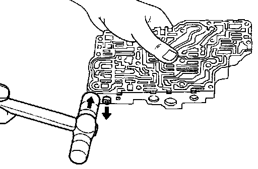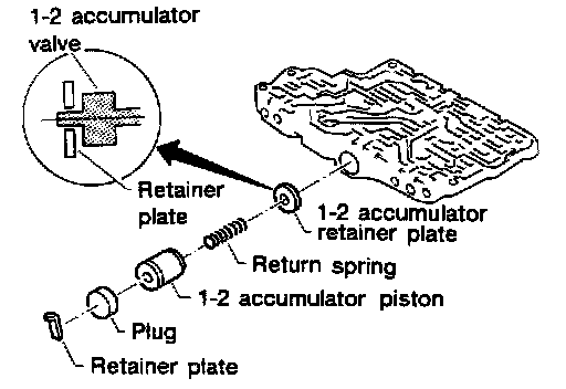 - Install 1-2 accumulator valve. Align 1-2 accumulator retainer plate from opposite side of control valve body.