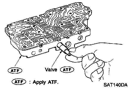 1. Lubricate the control valve body and all valves with ATF. Install control valves by sliding them carefully into their bores.