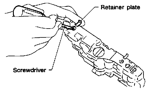 b. Remove retainer plates while holding spring, plugs or sleeves.